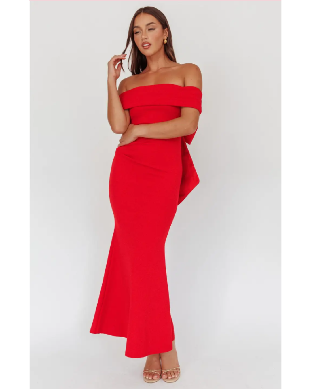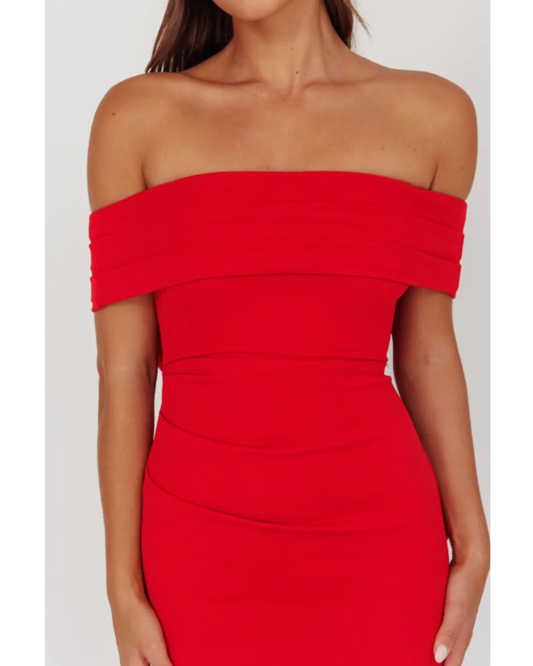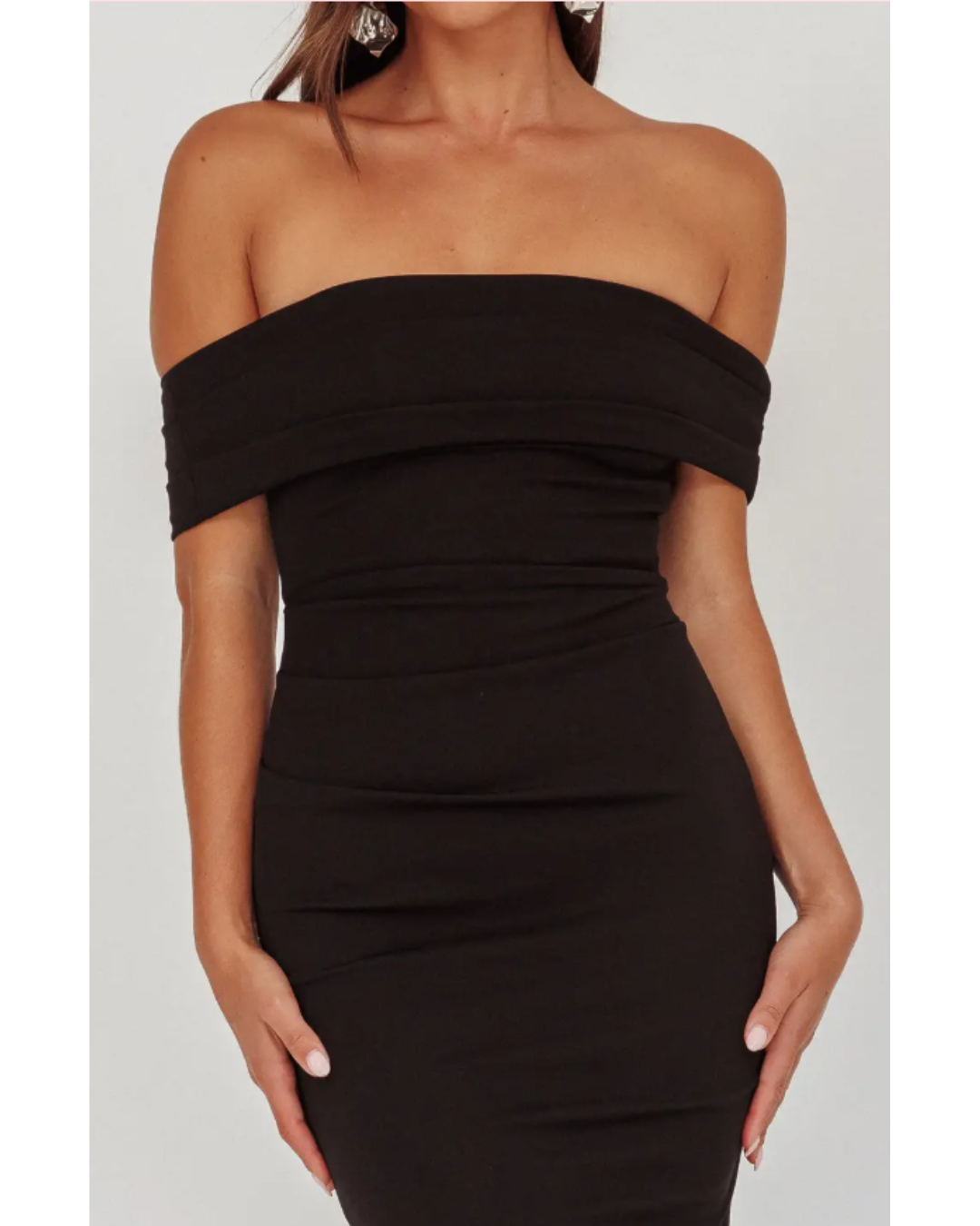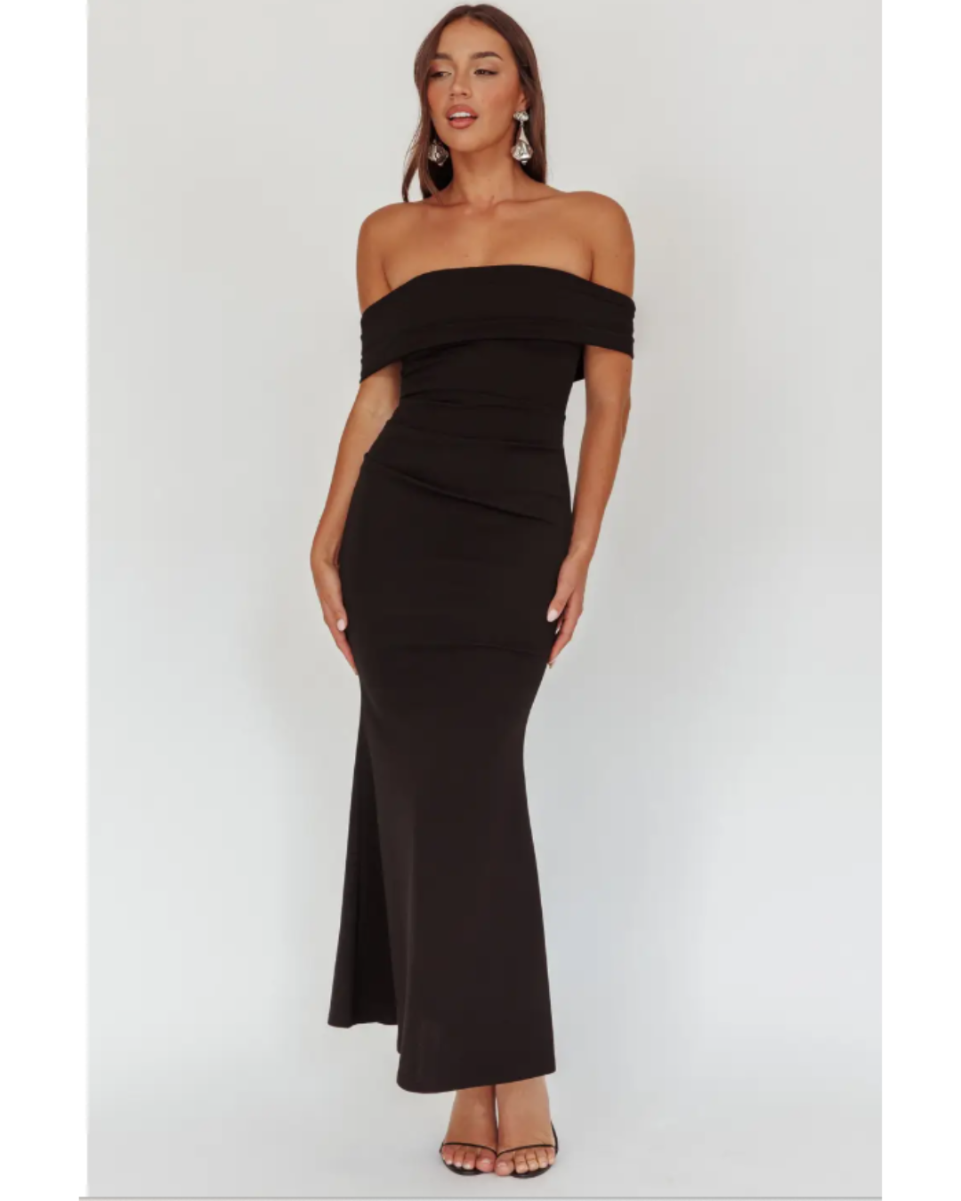 Introducing Gigi, an exquisite midi-length gown that epitomizes timeless elegance. This sophisticated piece features a striking off-the-shoulder neckline that gracefully frames the collarbone, while the fitted bodice showcases delicate ruching for refined textural interest. The skirt cascades effortlessly to the floor in a fluid, streamlined silhouette that commands attention at any formal occasion. Available in two versatile colorways, Gigi is the ultimate choice for those seeking understated luxury and polished refinement.