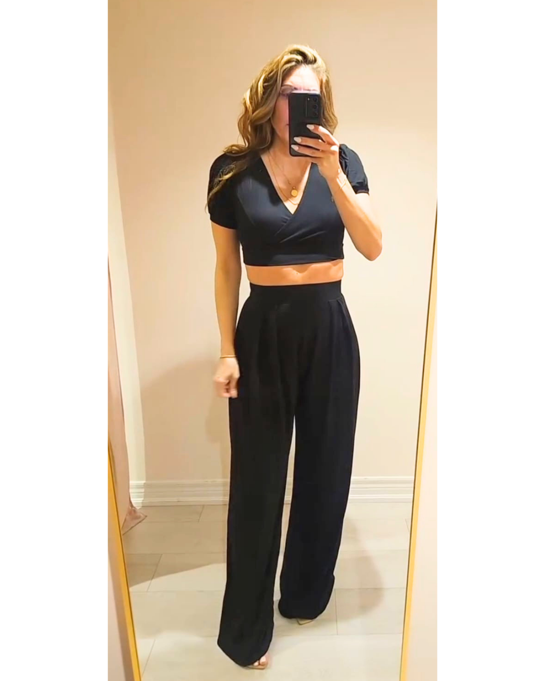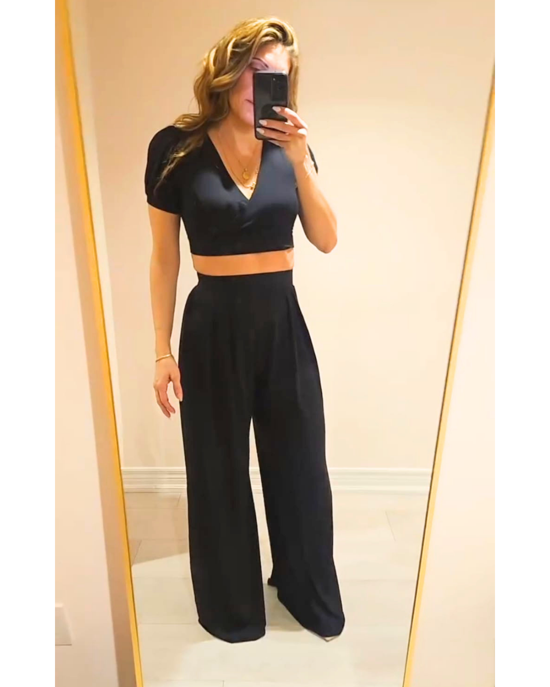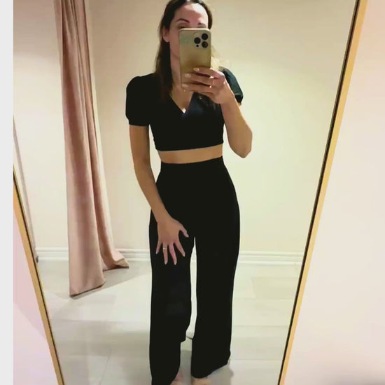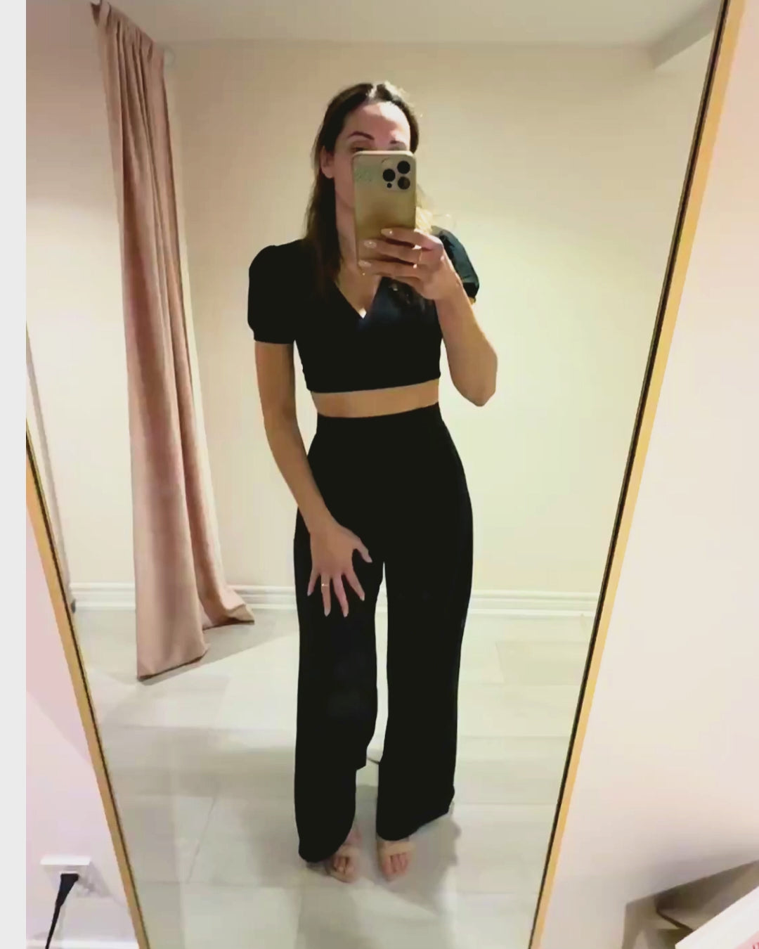 Effortless style meets comfort in this coordinated two-piece set. The cropped top pairs perfectly with high-waisted wide-leg pants for a modern, relaxed silhouette that flatters all body types. Versatile enough for casual outings or dressed up for an evening out. Mix and match with your existing wardrobe or wear together for an instantly polished look.
